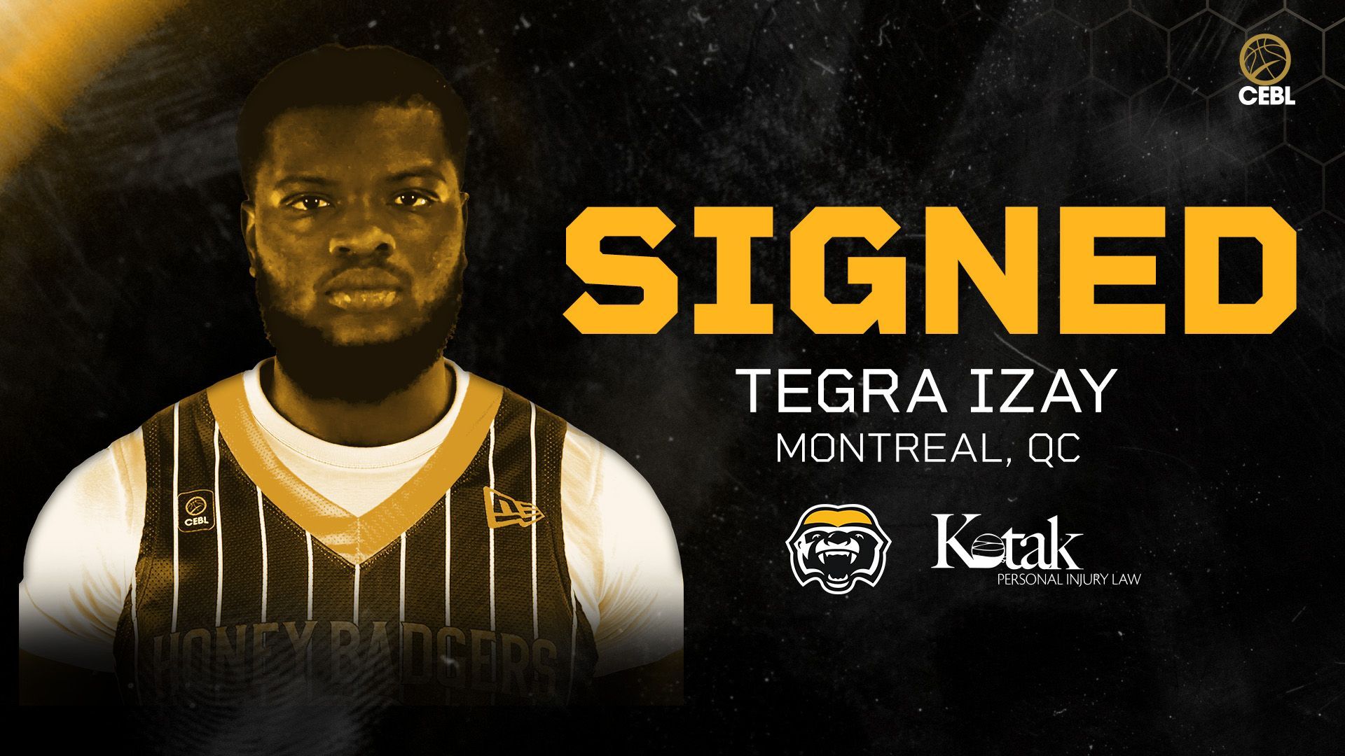 The Brampton Honey Badgers of the Canadian Elite Basketball League (CEBL) announced Monday that they have signed Montreal-native and University of Southern Mississippi alum Tegra Izay. Izay will be making his professional debut with the Honey Badgers this season after a six-year collegiate career spanning through the University of Southern Mississippi, Harcum Community College, and La Salle University. “The addition of Tegra gives us size and another physical presence,” said Honey Badgers General Manager and Vice President of Basketball Operations Jermaine Anderson. “He’s eager to start his professional career, and his work ethic and approach to the game align with our culture. We’re excited to welcome him to the Honey Badger family.” Most recently with the Golden Eagles, the seven-footer recorded two or more blocks in eight games and shot 59.5 percent from the field on the season while studying as a graduate student. In 2022, Izay transferred to Harcum Community College in JUCO where he averaged 8.4 points, 9.2 rebounds, and 2.4 blocks per game. He recorded seven double-doubles on the season, putting up some monster statlines including 16 points on 5-for-5 shooting, eight rebounds, and three blocks December 17 vs. Cape Fear Community College and 13 points, 13 rebounds, and eight blocks November 1 vs. CCBC Catonsville, to name a few. “Tegra brings a relentless motor, toughness, and a team-first approach that aligns with everything we value,” said Honey Badgers Head Coach Alex Cerda. “He impacts the game on both ends - defending, rebounding, screening and making winning plays that don’t always show up in the box score. We’re excited about his growth and the edge he adds to our group." After Izay’s freshman season with La Salle University, he was awarded Atlantic 10 Commissioner’s Honour Roll, which recognizes student-athletes who achieved a combined GPA of 3.0 or higher. The Brampton Honey Badgers will begin their season with two home games on Friday, May 15 and Sunday, May 17 versus the Ottawa BlackJacks and Calgary Surge, respectively. Click here to get your Honey Badgers tickets today, starting at only $15 per game. ### About the Brampton Honey Badgers One of the original franchises of the Canadian Elite Basketball League (CEBL), the 2022 CEBL Champion Brampton Honey Badgers proudly call the CAA Centre home. The Brampton front office and basketball operations department bring NBA, NBA G League, national team, NCAA and major international pro league experience to the franchise. With a vision of promoting Brampton grassroots basketball and local businesses through community and corporate engagement, the Honey Badgers will leverage the explosion of basketball as a vehicle for innovation and change. For more information visit honeybadgers.ca . About the Canadian Elite Basketball League (CEBL) The Canadian Elite Basketball League (CEBL) is Canada’s professional basketball league, featuring 10 member clubs across six provinces. Powered by elite talent, a fast-paced game format, and deep community connections, the CEBL delivers high-level basketball and unforgettable summer experiences for fans nationwide. The league boasts the youngest fan base in Canadian professional sport, half under age 34, and one of the fastest-growing audiences in the country, now reaching nearly 4.1 million Canadians. This momentum reflects the CEBL’s ability to deliver dynamic, thrilling gameplay while connecting deeply with a new generation of fans and expanding basketball’s cultural footprint across Canada. The CEBL is where elite performance meets homegrown talent. In 2025, 17 players with NBA experience hit the court, while nearly 70% of the league’s roster was Canadian, the highest concentration of domestic talent in any professional sports league in the country. Running from May through August, the CEBL’s season is a showcase of top basketball talent and a summer hub for fast-paced, high-energy fan excitement. Media Contact: Elias Eldridge - Account Executive & Communications Specialist Brampton Honey Badgers eeldridge@honeybadgers.ca